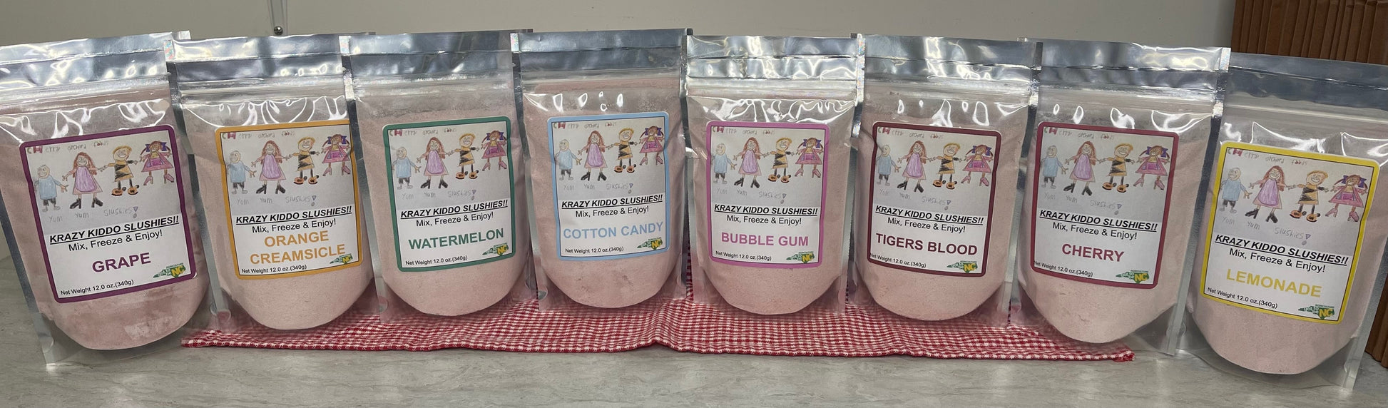 Our new Krazy Kiddo Slushie line of kids slushies are available in 8 different flavors at launch. We will be adding more flavors down the road.